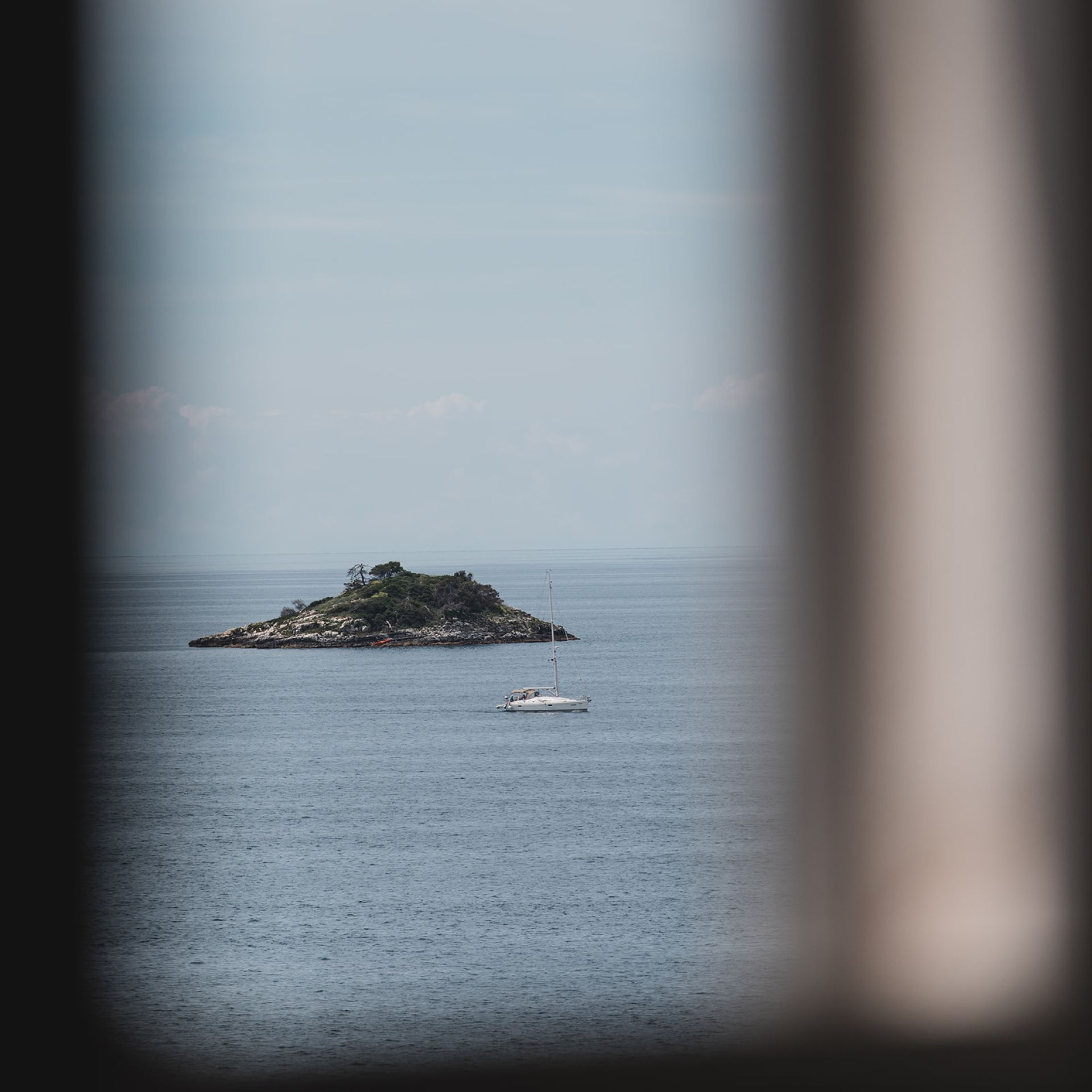 Airy apartment with stunning sea and Katarina Island views. Perfect for up to four guests, with a master bedroom, living area, fully equipped kitchen, and fresh sea breezes to enjoy while sipping morning coffee.